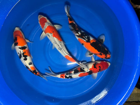 Sansai koi for sale, three-year-old Japanese koi with developed bodies, stronger colour, and refined patterns. Ideal for hobbyists seeking high-quality koi with proven growth and presence in the pond. Selected from trusted Japanese breeders and fully quarantined before sale.