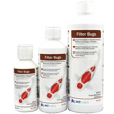 NT Labs Filter Bugs is a liquid bacterial blend designed to jumpstart and maintain biological filtration in ponds. Ideal for new filters, seasonal startups, or when ammonia and nitrite levels rise, it ensures stable water quality and a healthy pond environment.