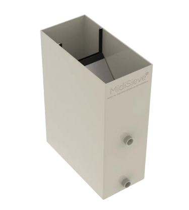 Compact in size yet highly capable, the Ultra-Sieve MIDI supports flow rates up to 2,500 GPH (approx. 12,000 L/h), making it ideal for koi ponds, water gardens, and filtration bays where space is limited. The strong polypropylene body is built for outdoor durability, and the screen removes easily for fast, simple cleaning.