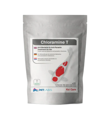 NT Labs Chloramine T is a widely used and highly effective treatment designed to reduce bacterial levels in pond water, promoting a healthier environment for your fish. It is particularly effective against White Spot (Ich), Skin Flukes, and certain bacterial gill diseases.